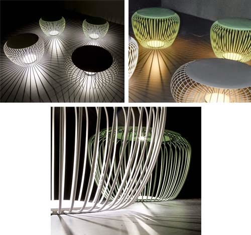 - Meridiano ideato da Jordi Vilardell per Vibia. Questa lampada ha come base il contrasto tra la luce emessa da una fonte luminosa e le ombre proiettate dalla stessa struttura nello spazio circostante. La lampada da terra, che ricorda una pianta grassa, ha un punto luce sospeso, diretto verso il basso, sostenuto da una struttura in tondino d’acciaio.